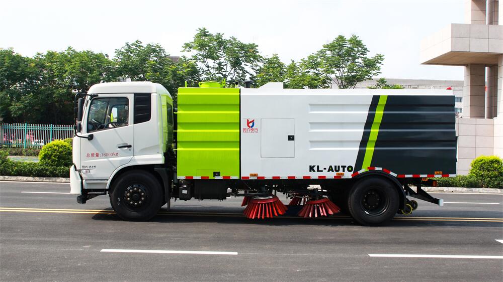 1.采用吸掃混合的方式收集垃圾,濕式除塵、電液,液壓傾翻卸料的作業(yè)方式對路面進(jìn)行清掃作業(yè)。