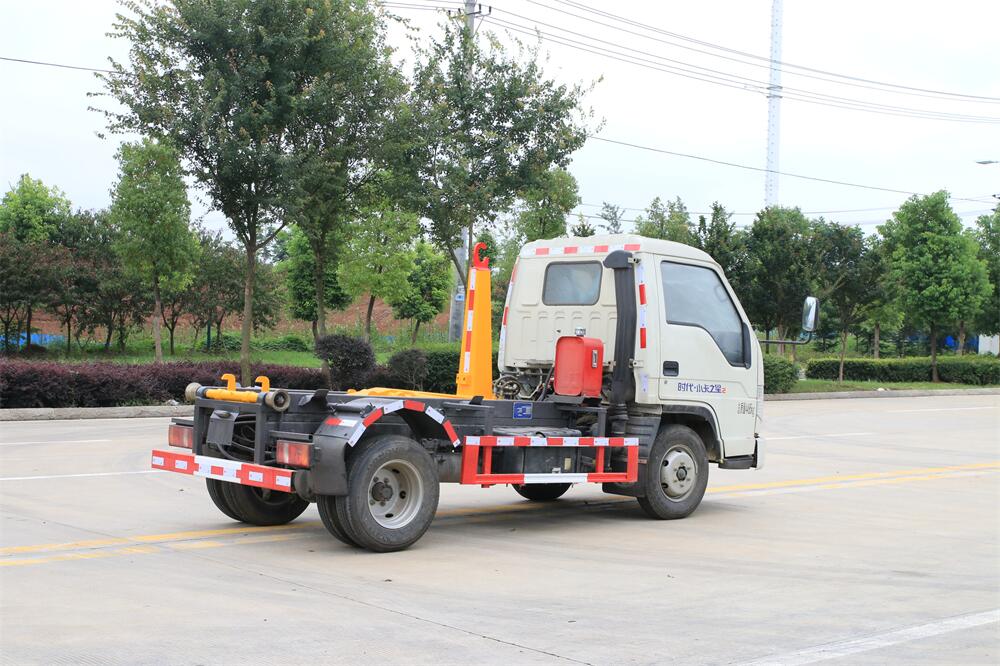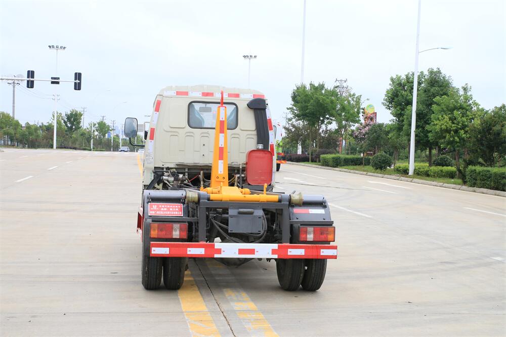 勾臂式垃圾車(車廂可卸式垃圾車)介紹: 車廂可卸式垃圾車又叫拉臂式垃圾車,是一種采用高新設(shè)計(jì)可伸縮的鉤臂,實(shí)現(xiàn)垃圾廂的二次吊裝,自吊上放下,可自行傾倒垃圾的環(huán)衛(wèi)設(shè)備。 拉臂式垃圾車結(jié)構(gòu)簡單,操作穩(wěn)定方便,裝卸效率高,機(jī)械化程度高,節(jié)省人力。鉤臂垃圾車一車可帶多個(gè)垃圾廂,在裝卸的運(yùn)輸過程中可有效地避免二次污染。 拉臂垃圾車采用高新設(shè)計(jì)可擺動(dòng)的鉤臂,垃圾箱由框架、開啟油缸、滑輪、后門和若干加強(qiáng)框架與鋼板焊接而成。調(diào)換貨廂快捷方便,貨廂上帶蓋(倒垃圾時(shí)可翻開),鉤臂垃圾車?yán)鴰w可選用碳鋼、不銹鋼材質(zhì)、內(nèi)部采取環(huán)氧樹脂防腐處理,改裝部分與原車底盤為可分離式,維修方便且保持了原車的機(jī)動(dòng)性及行駛性能。