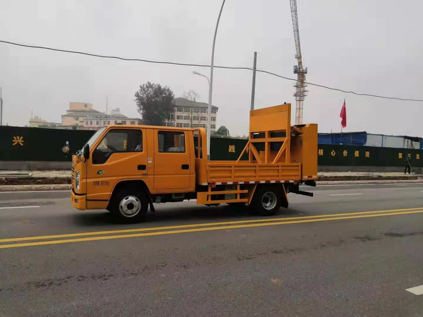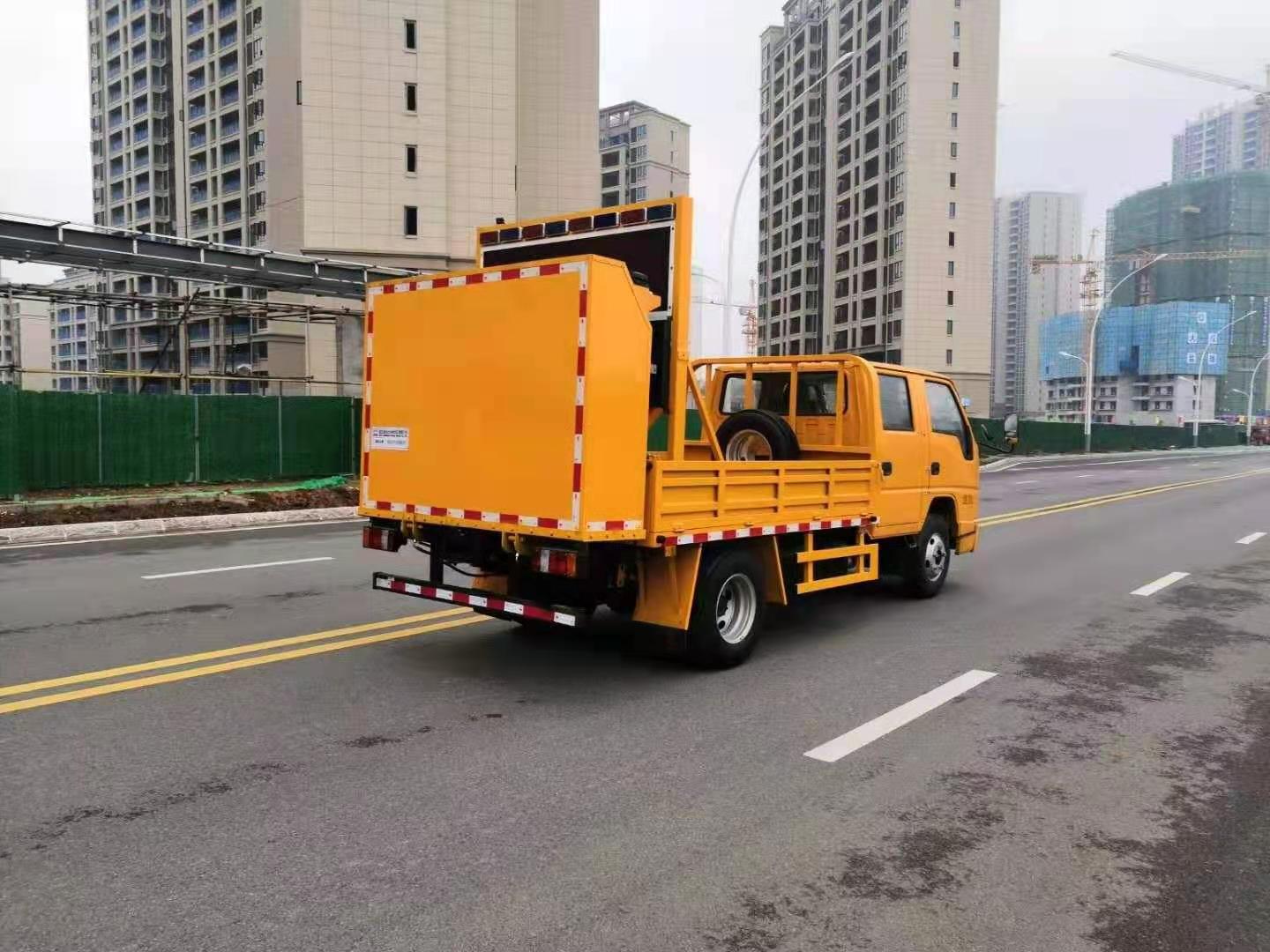 上裝配置:防撞緩沖車尾部設(shè)置防撞緩沖塊,防撞緩沖塊采用液壓升降裝置,還配備車載一體化的電子屏、電子箭頭標(biāo)志牌、頻閃燈及爆閃燈多種**示燈,能夠?yàn)楹蠓杰囕v提供**示和指示方向。箭頭指示標(biāo)志可對左、右及禁止通行進(jìn)行導(dǎo)向指示,對道路車輛提供主動安全引導(dǎo)和安全**示,**大限度降低施工對**流量的影響并確保安全。尾部升降和燈具采用遙控**,可在車輛附近安全**防撞緩沖塊的升降和**示燈的開關(guān)。