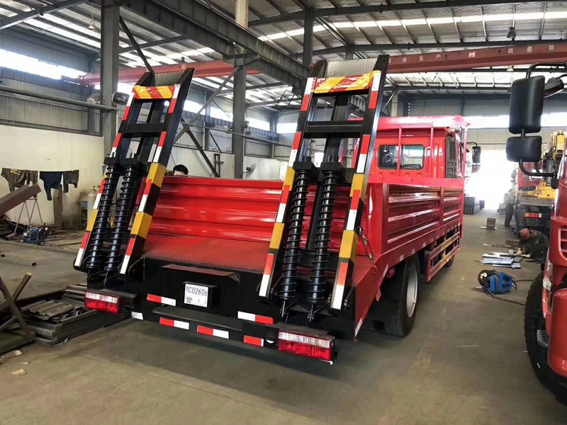 上裝采用5毫米花紋鋼板,120*120方鋼做橫梁,加強(qiáng)型雙爬梯.可定做液壓爬梯,可承載15噸以下挖機(jī)。也可加裝絞盤,可拉事故車等。公告拓展有雙節(jié)爬梯公告,可做雙節(jié)爬梯拉叉車,壓路機(jī)等鉆井設(shè)備!